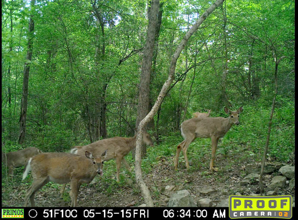 To wring out the Proof Cam, we set the camera near a mineral lick where we occasionally bowhunt, testing the photo, video, and time-lapse modes. We had not been in this area since December of the previous season, and were curious to see how much activity the lick would draw in late spring, and if there were any interesting bucks to look forward to this coming fall. As it turned out, the lick was still going strong in mid-May (we had placed the trace mineral block there in early September of last year). Three or four knobby-headed bucks, plus assorted does, frequented the lick over our three days of testing.